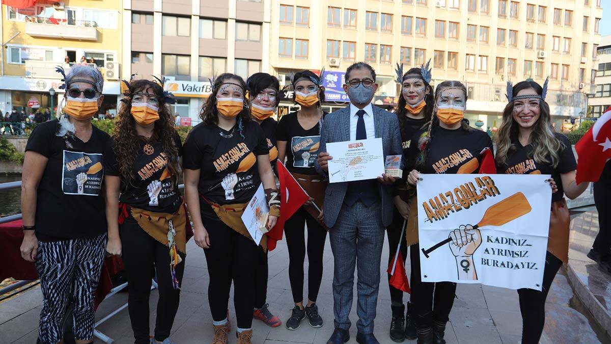 Dragon yarışlarına katılan Amazonlar takımı kendilerine verdiği destekler için Büyükşehir Belediye Başkanı Yılmaz Büyükerşen’e teşekkür ettiler. Başkan Büyükerşen’in önceden belirlenmiş programı olması sebebiyle katılmadığı ödül töreninde Amazonlar, Başkan Büyükerşen için hazırladıkları teşekkür plaketini Oğuzhan Özen’e takdim ettiler.