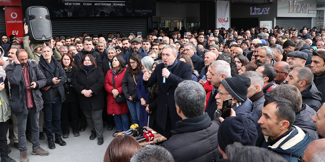 Burada açıklama yapan Tuncer Bakrıhan, “Yok öyle yağma. Van halkı sizi kabul etmez, bu kötülüğü unutmaz. Van, bu onursuzluğa geçit vermez. Aklınızı başınıza toplayın, insan olun, mert olun. Barış mı istiyorsunuz, çözüm mü istiyorsunuz?” dedi.