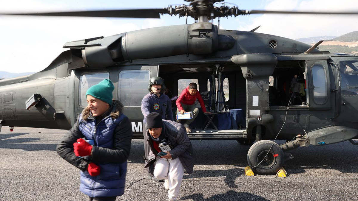 Çevre, Şehircilik ve İklim Değişikliği Bakanı Murat Kurum, Gaziantep’in Nurdağı ilçesindeki incelemeleri sırasında yanına gelen depremzede çocukları helikoptere bindirdi.