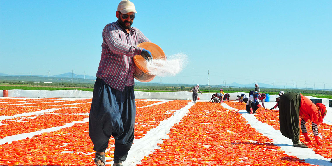 Türkiye’de kurutulmuş domatesin önemli merkezlerinden Manisa’nın Saruhanlı ve Turgutlu ilçelerinde kurutmalık domates mesaisi başladı. 104 bin 410 dekar alanda salçalık domates bulunan kentte, 26 bin dekarda toplanan domatesler kurutmalık olarak tarlalara serilmeye başlandı. Tarlada işçilerin topladığı domatesler, bazı tarlalarda elle kesimi yapılarak, bazı tarlalarda ise makineyle güneşe seriliyor. Tuzlama işleminin ardından 1 hafta boyunca kurumaya bırakılan domatesler, daha sonra tesislerde işlenerek ihraç ediliyor. Filipinler, Hollanda, Letonya, Litvanya, Tayland, Yunanistan başta olmak üzere çeşitli ülkelere ihracatı yapılıyor. 2023 yılında 1 milyon 150 bin 67 ton kurutmalık domates ihracı gerçekleşirken, 2024 yılı haziran ayı itibarıyla 277 bin 47 ton kurutmalık domates ihraç edildi.