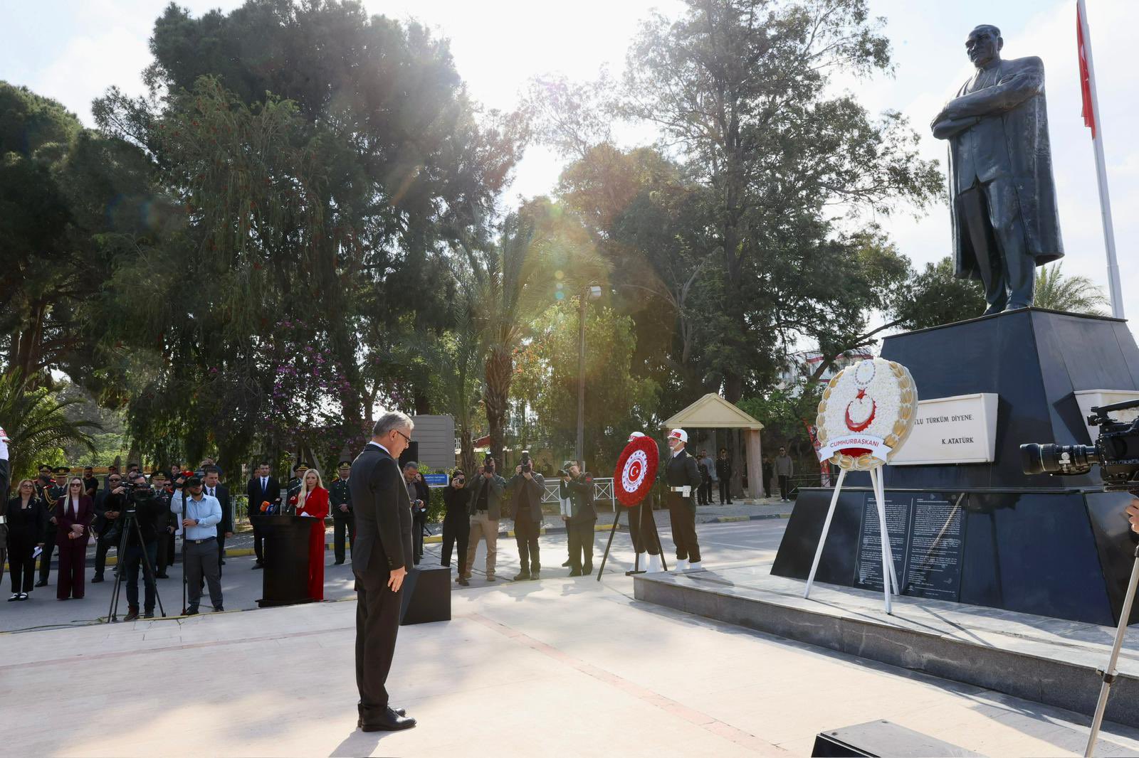KKTC Cumhurbaşkanı Erhürman, Ulu Önder Mustafa Kemal Atatürk'ün tüm dünya çocuklarına armağan ettiği 23 Nisan Ulusal Egemenlik ve Çocuk Bayramı kutlamaları çerçevesinde Lefkoşa Atatürk Anıtı önünde düzenlenen törene de iştirak etti. Tören, protokol sırasına göre anıta çelenklerin sunulması, saygı duruşunda bulunulması ve İstiklal Marşı eşliğinde bayrakların göndere çekilmesinin ardından sona erdi.