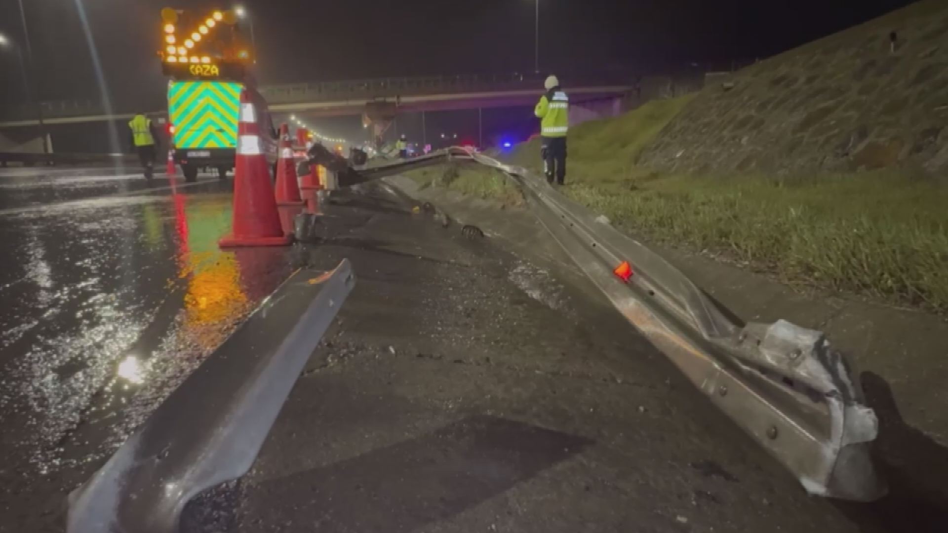 Çekmeköy Kuzey Marmara Otoyolu'nda şoförünün direksiyon hakimiyetini kaybettiği minibüs, bariyerlere çarparak takla attı.