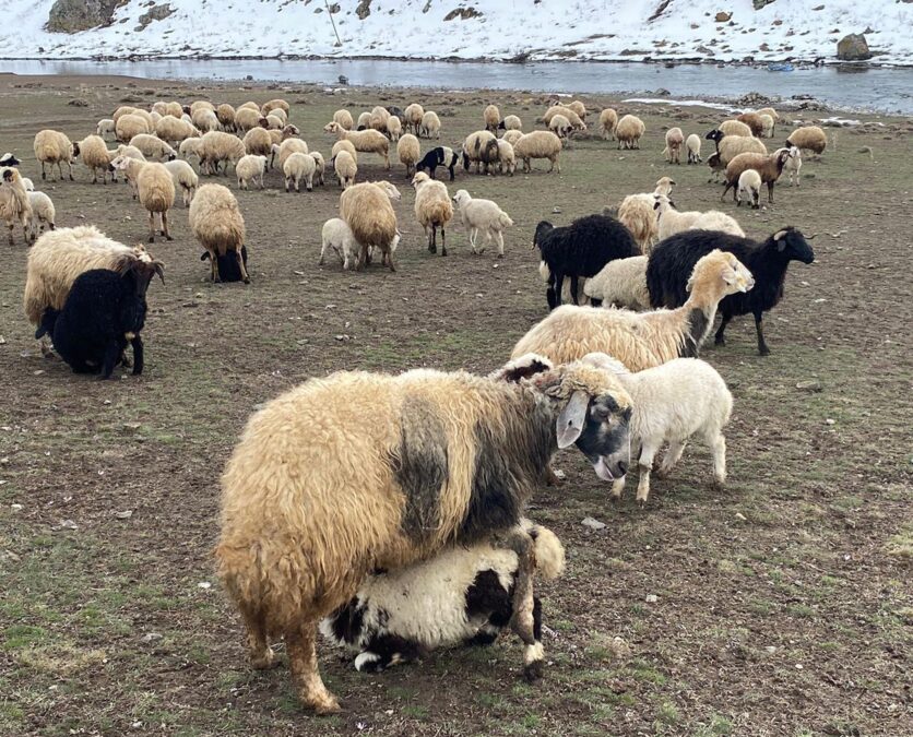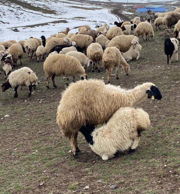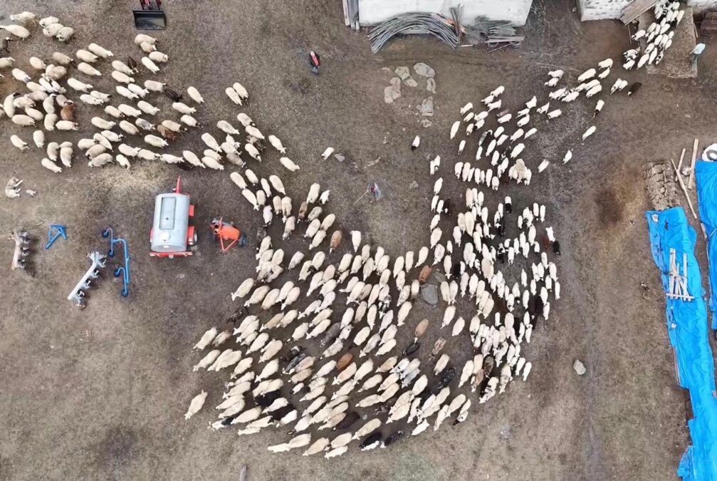 Kars’ın Arpaçay ilçesinde, Mehmet Özkaya’ya ait çiftlikte ağıldan çıkan koyunların kuzularıyla buluşması, dron kamerasıyla görüntülendi.