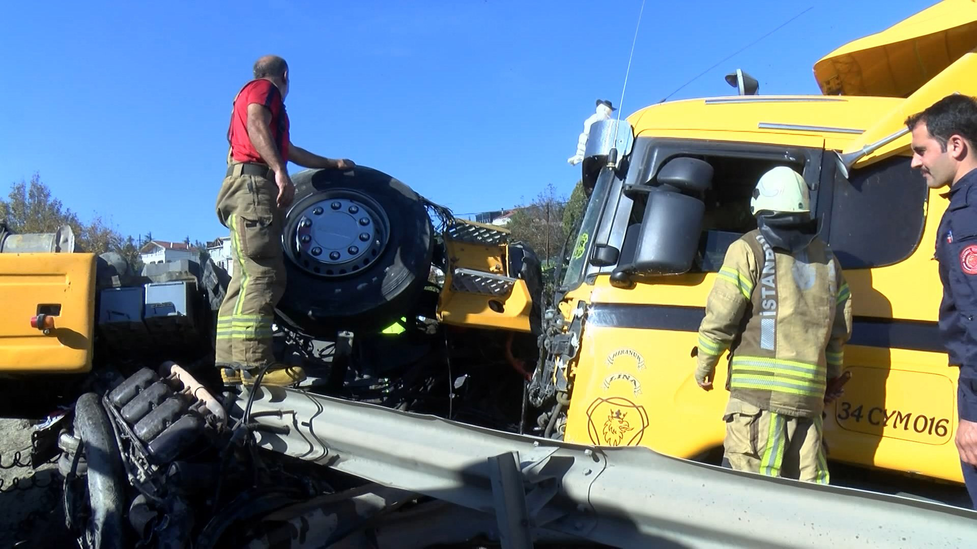 Olay, 14.00 sıralarında D-100 Karayolu Kumburgaz Mevkiinde meydana geldi. Beylikdüzü istikametine seyir halinde olan Ali Hacı A. yönetimindeki 34 CYM plakalı hafriyat kamyonunun lastiği patladı. Şoförünün direksiyon hakimiyetini kaybettiği kamyon bariyerlere çarparak devrildi.