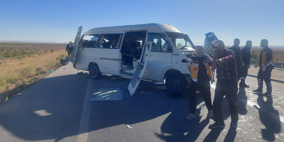 Karaman- Ereğli kara yolunun 25’inci kilometresinde lastiği patlayan yolcu minibüsü devrildi, kazada 1 kişi öldü, 11 yaralı var.