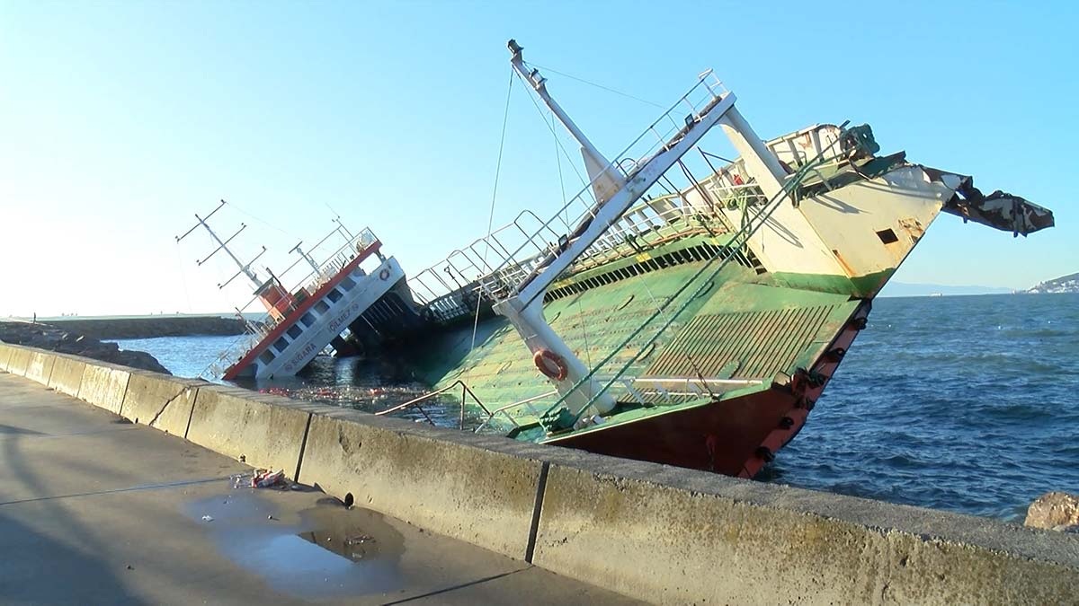Kartal’da 4 gün önce etkili olan şiddetli lodos nedeniyle bir gemi batmış, bir gemide yan yatarak iskeleye dayanmıştı. Lodosun sona ermesiyle batan kuru yük gemisi ÜMİT-K ve yan yatan UMUT isimli gemiler halatlarla iskeleye bağlandı.