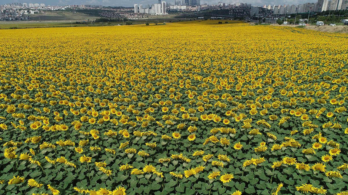 Avcılar’da Küçükçekmece Gölü ve Tahtakale Mahallesi’nin ortasında kalan Ispartakule’nin çevresindeki tarım arazisi, ekilen ayçiçekler nedeniyle renkli görüntüler oluşturmuştu. Ayçiçeklerin hasat edilmesi sonrası tarlalar, bölgede adak kurban olanak beslenen hayvanların otlağı haline geldi.
