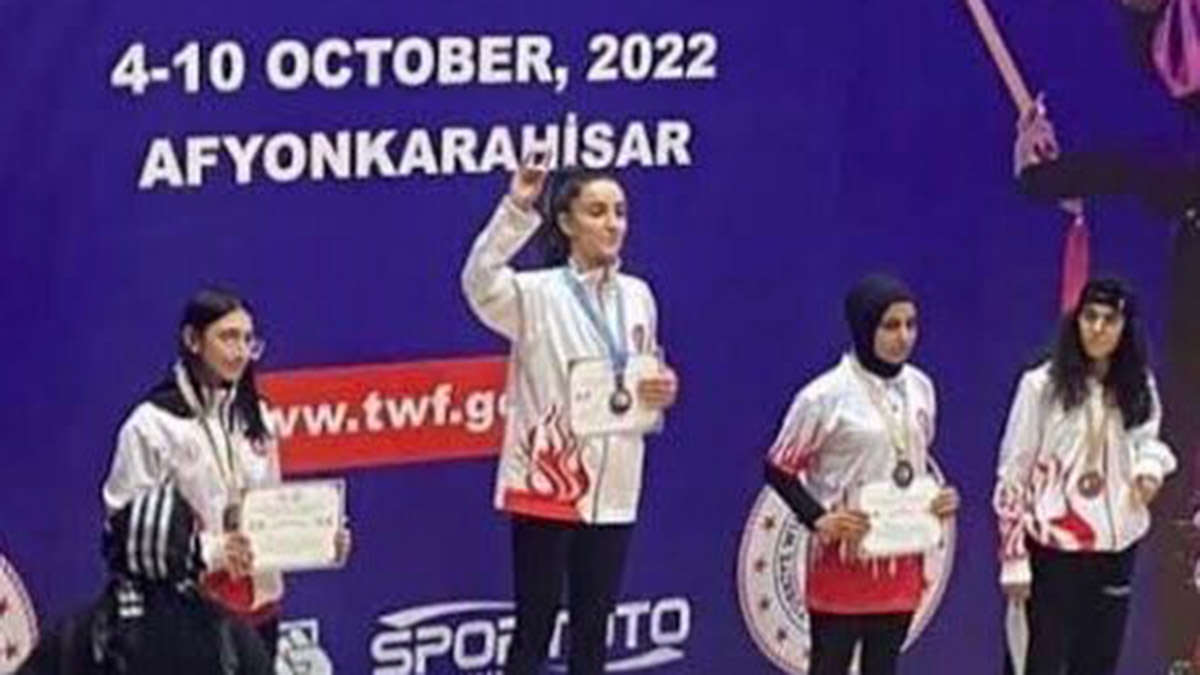 Afyonkarahisar’da 11 ülkeden 1100 sporcunun katılımıyla yapılan şampiyonada Sıla Zeynep Turan, 48 kiloda tüm rakiplerini yenerek şampiyon oldu. Madalya töreninde 1’incilik kürsüsüne çıkan Turan, eliyle ‘bozkurt‘ işareti yaptı. Bunu gören Türkiye Wushu Federasyonu Başkan Vekili Abdurrahman Akyüz’ün, “Terbiyesizlik yapma” diyerek, sporcuya tepki gösterdiği ileri sürüldü.