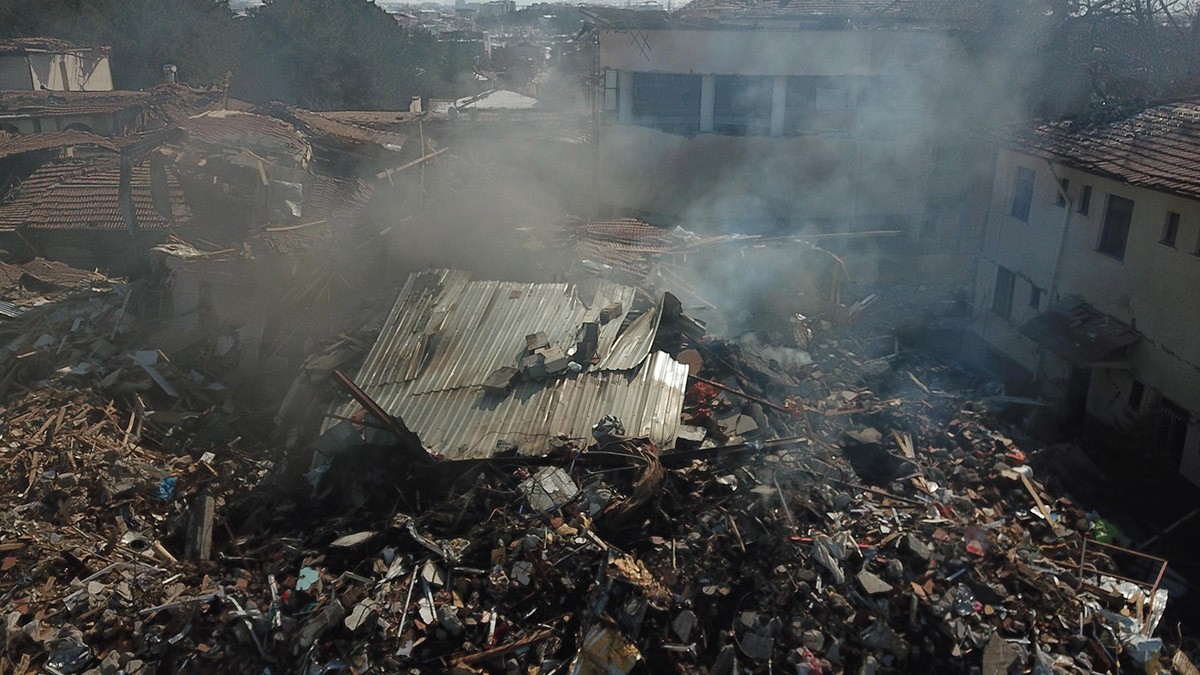 Esat Doğan Caddesi’nde alt katları iş yeri olan 4 katlı bina, Kahramanmaraş merkezli depremlerde yıkıldı. Can kaybının olmadığı çökmenin ardından enkazda, yangın çıktı. İtfaiye ekiplerinin müdahalesine rağmen, 18 gündür enkazdan dumanlar yükseliyor.
