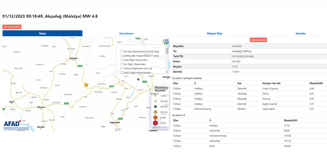 Afet ve Acil Durum Yönetimi Başkanlığı’ndan (AFAD) alınan bilgiye göre; saat 03.18’de merkez üssü Akçadağ ilçesi olan 4.8 büyüklüğünde deprem meydana geldi. Yerin 7 kilometre derinliğinde kaydedilen deprem, kısa süreli endişe yarattı. İlk belirlemelere göre; depremde herhangi bir olumsuzluk yaşanmadı.