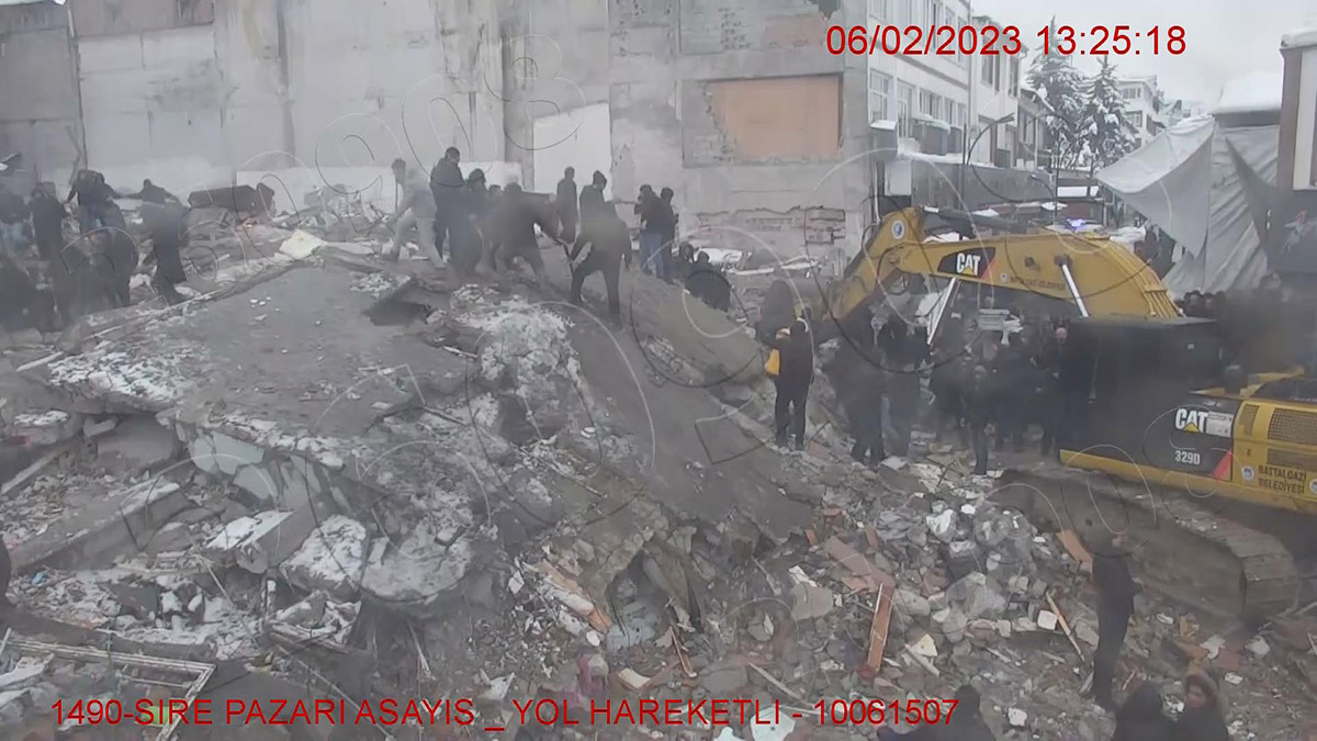Aynı zamanda Yeni Cami ve Büyük Otel’in yıkılması, Aslant Caddesi’nde bir binanın yıkılması da görüntülerde var. Öte yandan görüntülere, ikinci depremde enkaz alanında arama kurtarma çalışmaları, insanların panikle enkaz üstünden kaçması ve birbirlerine sarıldığı yansıdı. Spor Toto 1’inci Lig ekibi Yeni Malatyaspor’un kalecisi Ahmet Eyüp Türkaslan’ın kaldığı otelin yıkılma anı da görüntülerde yer alıyor. Yıldız Tepe’deki mobese kameralarında ise şehrin genel görüntüsü ve toprak kaydığı görülüyor.