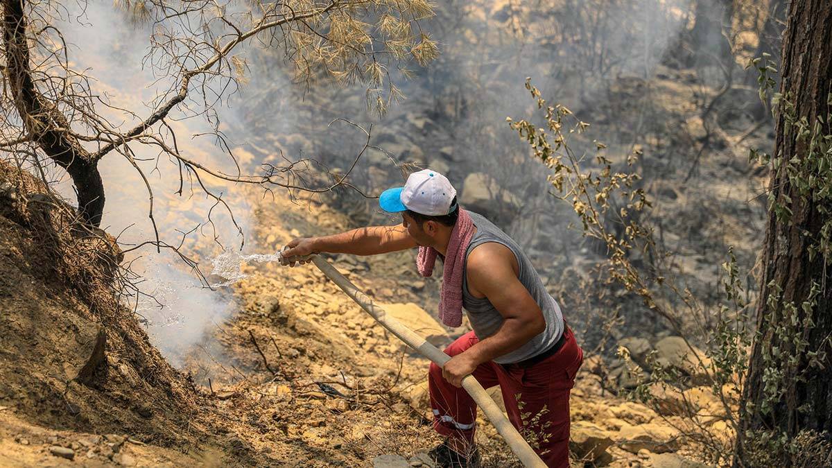 O ana kadar oğlumla birlikte çalışıyordum. Ben büyük ağaçlara doğru yöneldim, aramızda biraz mesafe oluşmuştu. O sırada talihsiz bir kaza yaşandı. Oğlum ağacın altında kaldı, son anda canını kurtardı fakat ayağına düşen ağaç sağ ayağının bilek üstünden kırılmasına neden oldu. Devletimiz o anda bile havadan ve karadan yardımımıza koştu. Biz çalışırken helikopterler yetişti, yoksa yanıp kül olacaktık, köyümüz kurtuldu. Oğlumun ayağı Manavgat Devlet Hastanesi’nde ameliyat oldu. Tüm çalışanlara teşekkür ederim, köyümüzü kurtardık, devletimiz var olsun” dedi.