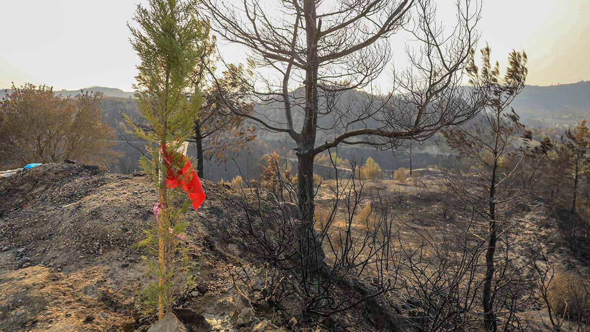 Manavgat’taki yangında küle dönen ormana bir kişi çam fidanı dikerek üzerine de Türk bayrağı ve ‘Orman Candır’ isimli bir şiir bıraktı. Şiirin sonuna ise ‘Her kimseniz siz Türk milleti ile başa çıkamazsınız’ yazılı not bırakıldı.