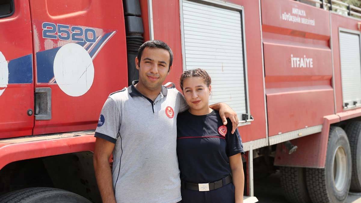 Antalya Büyükşehir Belediyesi İtfaiye Daire Başkanlığı bünyesinde görevli itfaiye eri Nurhan Erol (24) ile İzmir İtfaiyesi’nde görev yapan kardeşi Arjin (22) çocukluk hayalleri olan mesleklerini yaparken, kader onları Manavgat yangınında bir araya getirdi.
