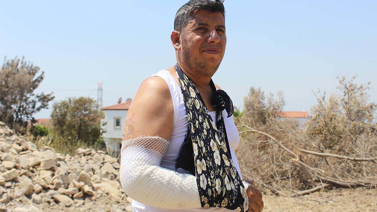 Evde hayvanları da olduğu için kadınları gönderdikten sonra tek başına hem hayvanları hem de evi kurtarmak için yangınla 4 saat mücadele ettiğini anlatan Hasan Manas, “Evi yakmasın diye tüpü attım, motoru kaçırdım. Evin yanındaki ahırda kuzularım vardı, yan tarafta arılarım vardı ama hepsi yandı. 6- 7 ton samanım gitti. Daha da gözlerim şişik o günden beri. 51 koyunum yandı” diye konuştu.