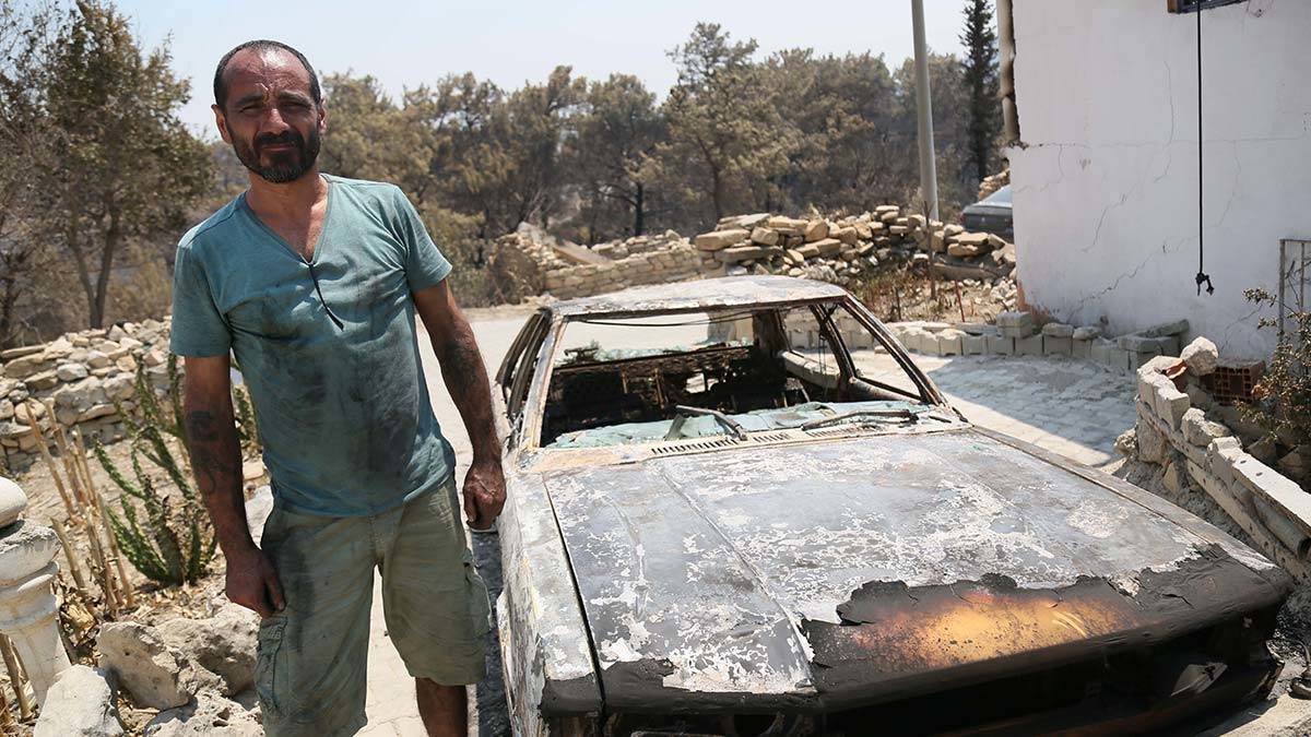 Alevler ilerlerken oğlu tarafından dışarı çıkarılan Kamil Gardaş, “Gece kalktık dağdan almış gelmiş yangın, oğlan vardı ‘Kaçalım’ dedik. Arabasını çalıştıramadı, aşağıda bir komşu vardı onun arabasına bindik gittik. Hepsi yandı ev, ahır ama hayvanım yoktu. Ayakkabılarımla gittik. Çadırda yaşıyoruz artık cereyan da yok” diye konuştu.