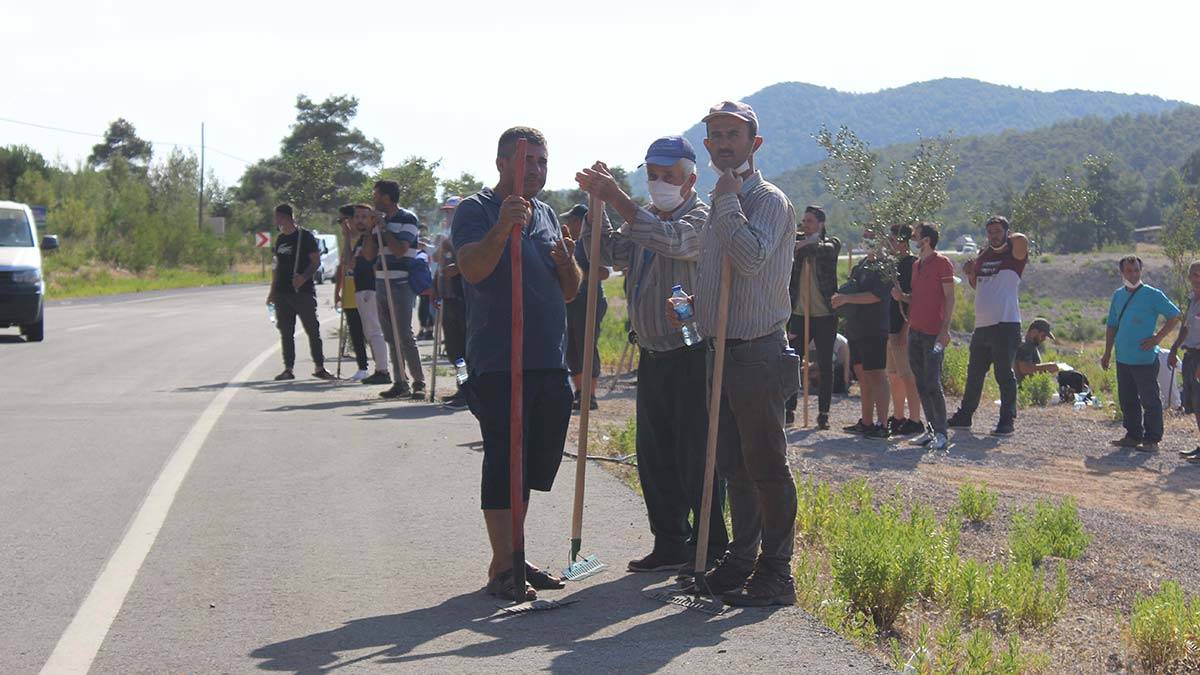 Yangını söndürmek için çabalayan mahalle sakinleri bazen yorgun düşerken, bazı vatandaşlar da alanda bulunan mahalle sakinlerine yiyecek ve içecek getirerek destek verdi. Acıkan ve bulunduğu alanda oturan mahalle sakinleri yemeklerini yedikten sonra tekrar tırmık ve ağaç dallarıyla ilerleyen yangını söndürmek için hazır beklemeye geçti. Yangında alevlerin azaldığı noktada gökyüzünü ve araçların geçtiği kara yolu zaman zaman duman altında kaldı. Yoğun yangının dumanından vatandaşlar araçlarını zorlukla geçirirken, itfaiye ekipleri de anonslarla vatandaşları dikkatli olmaları ve helikopterin geçtiği esnada rüzgara dikkat etmeleri konusunda anonsla uyardı.
