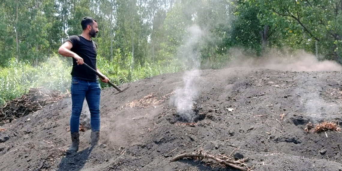 Mangal kömürü üreticisi Ercan Çelik, “Narenciye ağaçlarını kökünden söküp kesiyoruz ve burada yoğuruyoruz. Odunları piramit şeklinde sıralayıp samanla örttükten sonra toprağa gömüyoruz. Bu odunları yukarıdan ateşleyerek yanma sürecini tamamlıyor ve kömür haline getiriyoruz. Bu işlem için odunları dizmek yaklaşık 5-10 gün sürüyor. İşlem bittikten sonra toprağa gömüyoruz ve ortalama yanma süresi 20 gün, bazen 25 gün veya 1 ay kadar sürebiliyor. 35 günden sonra soğutma işlemi yapılıyor ve naylon brandayla örtülüyor” dedi.