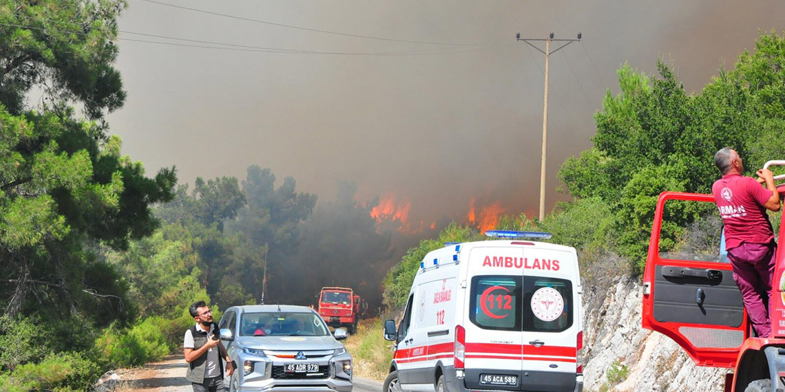 Saruhanlı’nın kırsal Hatıplar Mahallesi’ndeki ormanda saat 13.30 sıralarında yangını çıktı. Alevler rüzgarın da etkisiyle kısa sürede büyüdü. Bölgeye 39 arazöz, 6 uçak, 5 helikopter, 4 su tankeri, 3 dozer, çok sayıda orman işçisi ile itfaiye ekipleri sevk edildi. Rüzgar nedeniyle söndürme çalışmalarında güçlük yaşanırken, çıkış nedeni henüz belirlenemeyen yangına havadan ve karadan müdahale sürüyor.