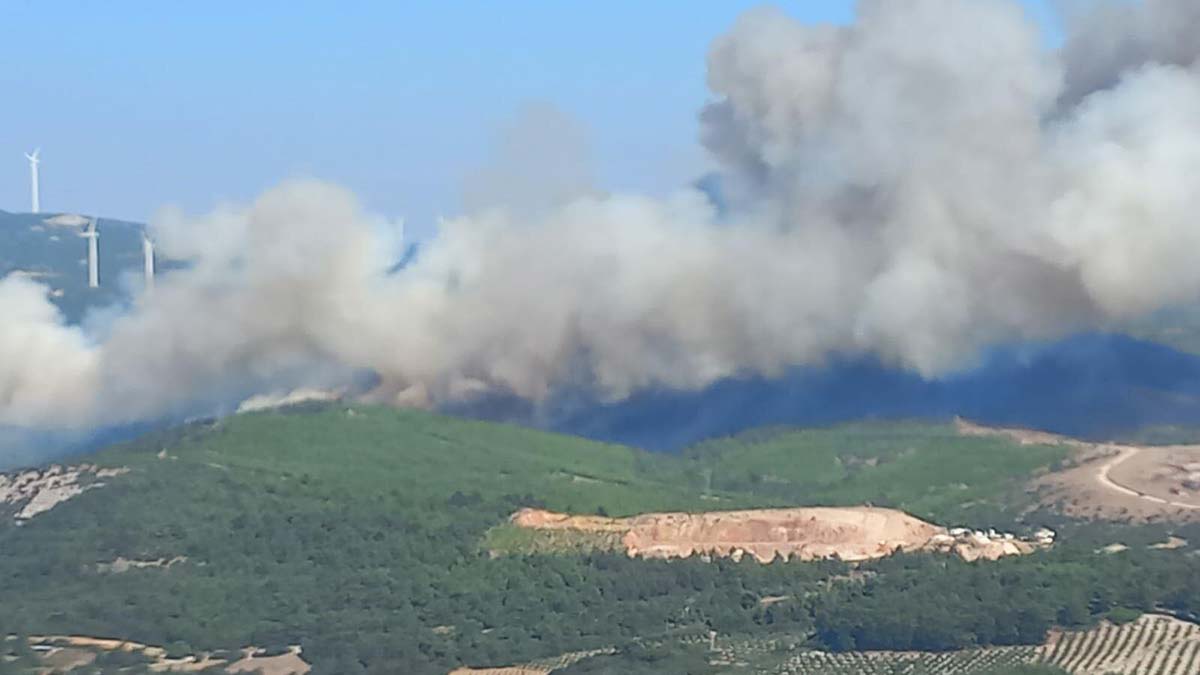 Manisa’nın ilçesi Soma’da orman yangını çıktı. Alevlere, havadan ve karadan müdahale ediliyor.