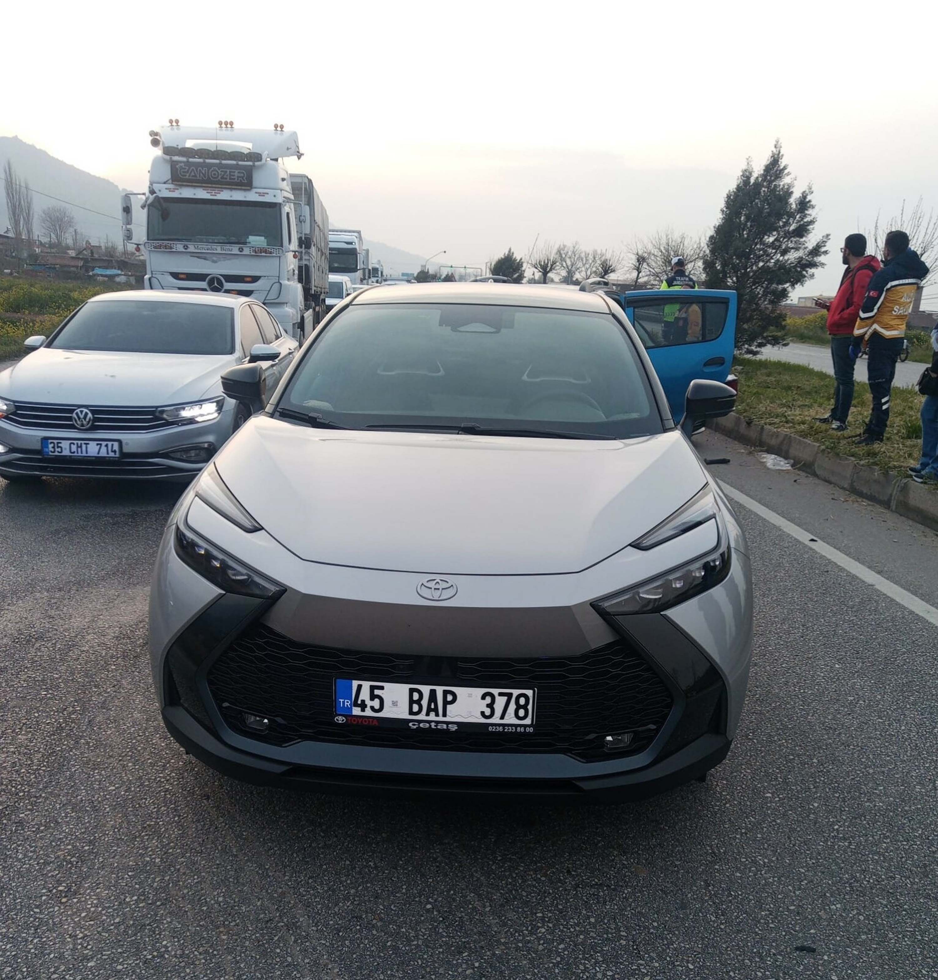 Kaza, saat 11.30 sıralarında, İzmir-Ankara D 300 Kara Yolu Caferbey Mahallesi mevkisinde meydana geldi. İddiaya göre; H.T.'nin kullandığı 45 Bap 378 plakalı otomobil ani fren yaptı. Bu sırada aynı yönde ilerleyen Ö.G. yönetimindeki 45 Arb 278 plakalı otomobil, B.A. yönetimindeki 06 Bpv 148 plaka otomobil ve A.E. yönetimindeki 45 Ass 196 plakalı otomobil çarpıştı. Sürücülerden 3'ü ve araçlardaki S.G., M.Y., H.E., E.G. olmak üzere toplam 7 kişi yaralandı.