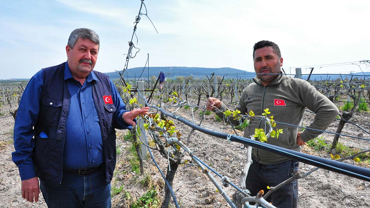 Dilek Mahallesi’nde 35 dönüm bağ bulunan Canan Karlıgülük (42) ise “Şu an bizim mahallede 700 ile 900 dönüm arasında bir zarar mevcut. Henüz sezonun başındayım ve 25 bin TL’lik masraf yaptım. TARSİM yetkililerini zarar tespiti için bekliyorum” diye konuştu.