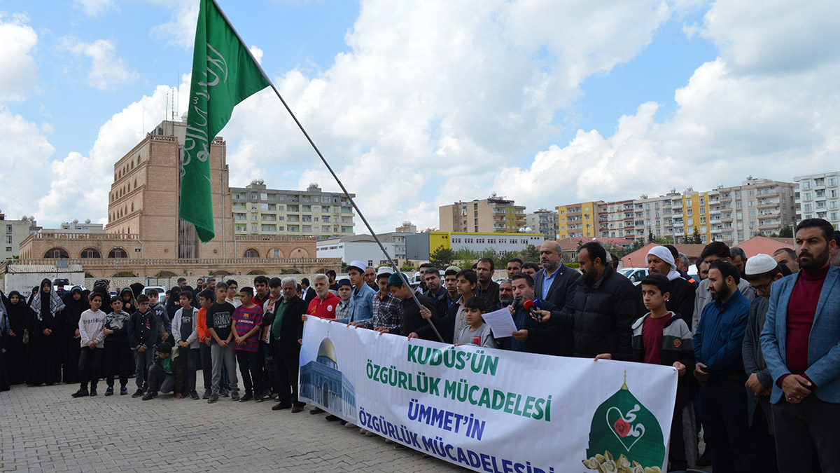 Bingöl’de Ulu Cami’de kılınan cuma namazının ardından avluda toplanan kalabalık, Filistin’e yönelik yapılan saldırıları protesto etti. Peygamber Sevdalıları Vakfı Bingöl Koordinatörü Şefik Börü, Mescid-i Aksa’ya yönelik aralıksız devam eden saldırılara ve Filistin’de masum insanların şehit olduğunu ifade ederek, “Bizler, Kudüs ve Mescid–i Aksa’nın özgürlüğü için atılacak her adımı desteklemekteyiz.