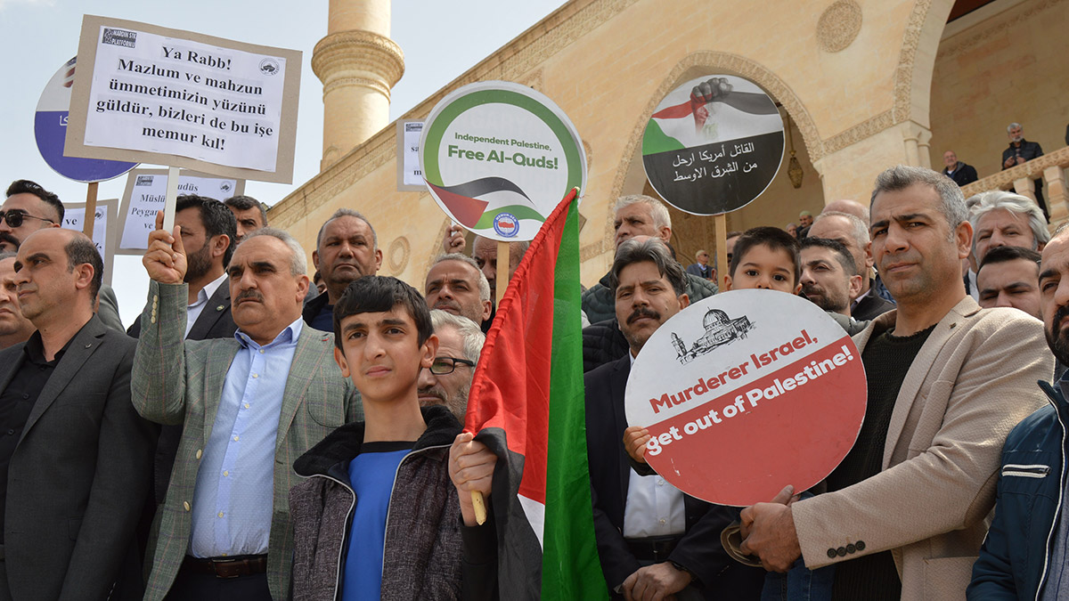 Mardin Sivil Toplum Kuruluşu Platformu, cuma namazı sonrası Artuklu ilçesindeki Şakir Nuhoğlu Camii önünde İsrail’e tepki gösterdi.