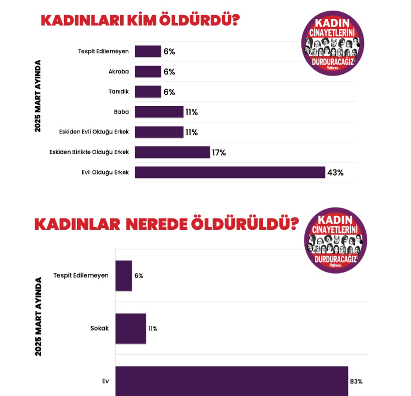 Kadın Cinayetlerini Durduracağız Platformu 2025 Mart Raporuna göre; Mart ayında 18 kadın cinayeti işlendi, 30 kadın şüpheli olarak öldü.
