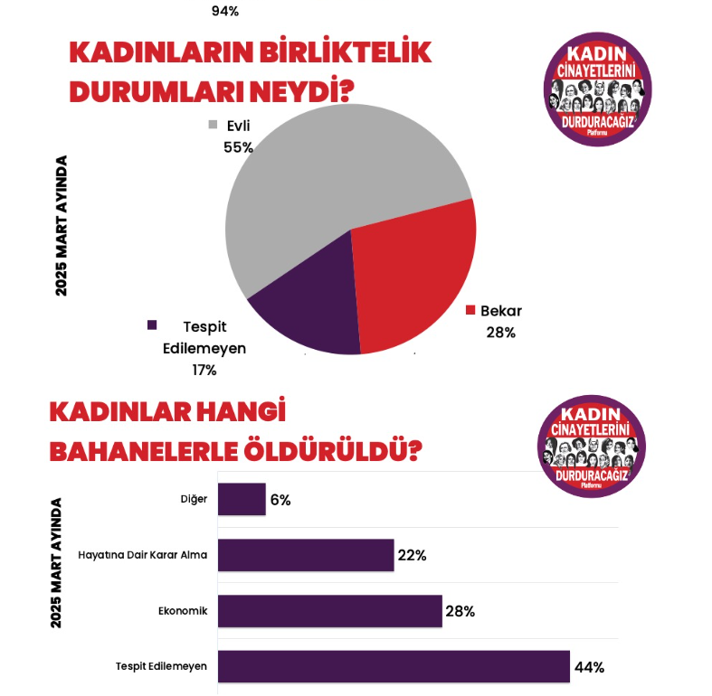 Kadın Cinayetlerini Durduracağız Platformu 2025 Mart Raporunu yayınladı.