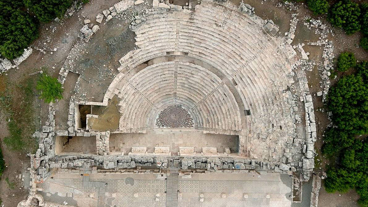 Odeion, iç kısımda 31 oturma sırası ile yaklaşık 2 bin 500-3 bin kişilik izleyici kapasitesine sahiptir. Bu haliyle ülkemizde, antik dönem içinde üzeri bir çatı örtüsüyle kapatılmış, en büyük kamu yapısı olma özelliğini taşımaktadır. Yapının orkestra bölümünün zemininde renkli mermer plakalardan (opus sectile) oluşan Medusa (Antik Çağ’da gözlerine bakanı taşa çevirdiğine inanılan mitolojik figür) betimlemesi yer almaktadır. Yapılış tekniği bakımından, buradaki Medusa figürünün bir benzeri daha henüz bilinmemektedir yani üniktir.”