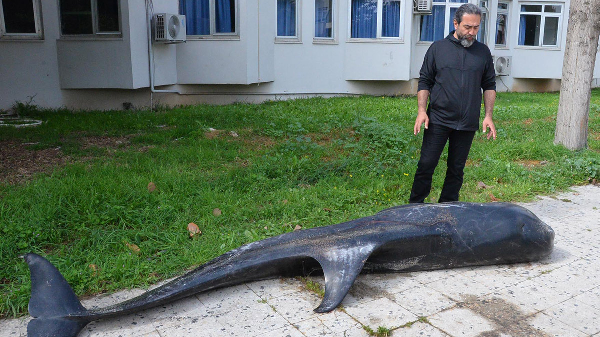 Mersin’de açık denizlerde görülen, 3 metre 35 santim boyunda, 360 kilo ağırlığındaki boz yunus (Grampus griseus) ölüsü kıyıya vurdu. Yunusun ölüm nedenini tespit etmek için çalışma başlatıldı.