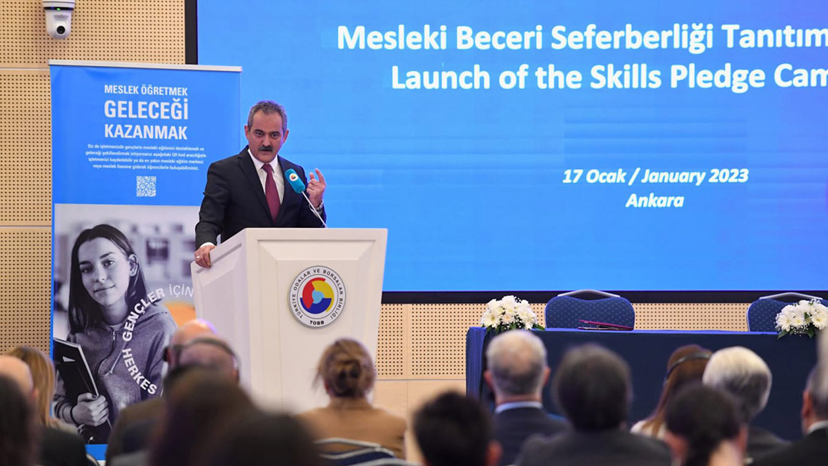‘Mesleki Beceri Seferberliği’ adını verdiğimiz bu kampanya ile UNICEF İş Danışma Kurulu üyesi, Türkiye’nin önde gelen iş dünyası kurumları ve şirketleri mesleki eğitimden stajyer almayı ve istihdam sağlamayı taahhüt ediyor. Ülkemizdeki tüm şirketleri de bu kampanyaya katılarak mesleki eğitimden stajyer almaya ve istihdam sağlamaya davet ediyorum. Milli Eğitim Bakanlığı ve TOBB olarak hem mesleki eğitim kalitesinin gelişmesi için hem de öğrencilerin mesleki eğitimi tercih etmeleri için çalışıyoruz.