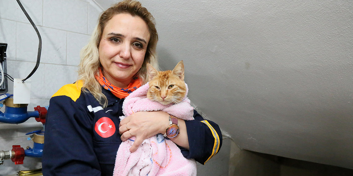 “‘Saruhan’ benim bahçemde baktığım kedilerden biri. Çok usludur, çok akıllıdır. Dün 2 kedimi kaybettim aslında. Birini buldum, balkona kadar suydu, çarşafı uzatıp, onu öyle kurtarabildim, hemen geldi o. Ama ‘Saruhan’ı bulamadım. Çok ağladım, sürekli kapıya çıktım, çünkü merdivenin en son basamağına kadar suydu, kapıyı bile açamıyorduk. Evde 12 saat kadar mahsur kaldık. Sabaha karşı çok dua ettim, artık sesini duyurunca, bana sesini duyurdu, aşağıda bodrumda iki odalı bir yer. Hemen girişteki odada valizin üzerindeydi. Çok soğuktu su, mazotta karışmıştı suya, kokusu hala geliyor. Kızımla beraber indik. Kızım giremedi, çok soğuktu onu sokmadım, duamızı ettik girdik. Çok şükür aldık, kurtuldu. Onlar için değer. 2 yıldır AFAD gönüllüsüyüm, AFAD’a gönlümüzü verdik. Yardıma ihtiyacı olanların yanındayız.”