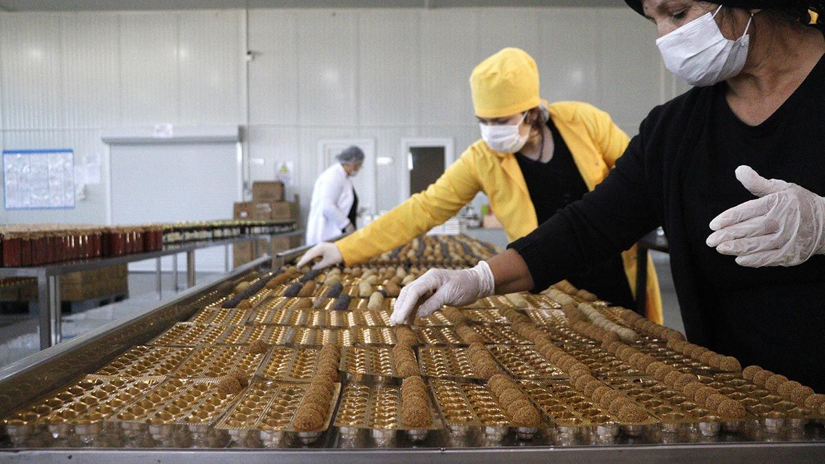 Ev ekonomisine katkıda bulunmak için 80 metrekarelik atölyesinde üretmeye başladığı Mevlevi tatlısını dünyaya pazarlıyor.