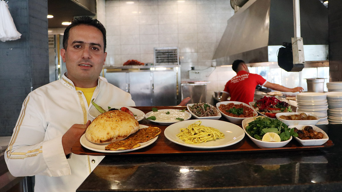 Eskiden beri Adana’da kebap servisinde ikramın ön planda olduğunu söyleyen kebapçı İsmail Çalıkıran ise restoranında kebabın yanında çeşit çeşit meze verdiğini anlattı. Çalıkıran, “Adana kebabının yanında biz 1’e 10 veriyoruz. Mevsim salatası, ezme, sumaklı soğan, yoğurtlu patlıcan, pişmiş domates, biber, fındık lahmacun, puf ekmek, köri soslu makarna, yeşillik, limon, mantar, pişmiş sıska soğan var.