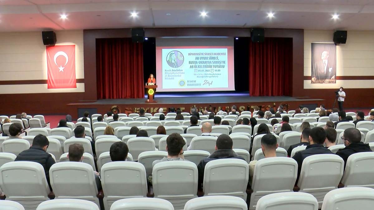 Üniversitenin Hadımköy Yerleşkesi Adem Çelik Kongre Salonu’nda gerçekleştirilen konferansta Arzu Erdem, dünyada yaşanan göçle ilgili değerlendirmelerde bulundu. Savaşla ilgili de değerlendirmelerde bulunan Erdem, Türkiye’nin bu savaşta en büyük arabulucu olduğunu söyledi. Türkiye’nin barışın sağlanmasında elinden gelen her şeyi sağlamaya çalıştığına değinen Erdem, “Bizim en hassas noktamız Kırım. Bununla ilgili hassasiyetimizi her zaman ortaya koyuyoruz” açıklamasını yaptı.