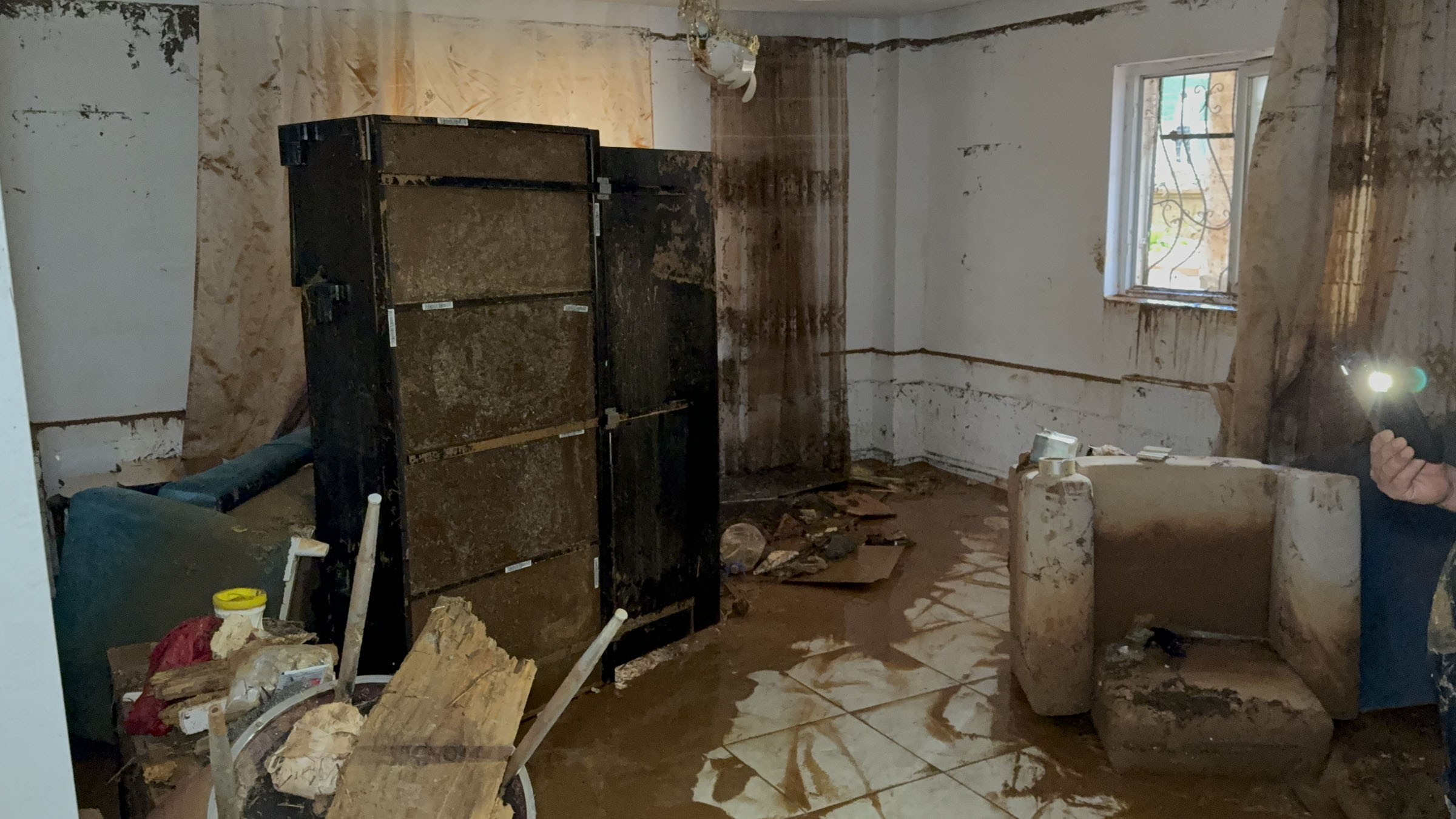 “Maalesef sosyal medyada ve televizyonlarda gördüğümüzden daha büyük bir felaket yaşamış burada. Vatandaşlarımızın tüm eşyaları yok olmuş durumda. Ev diye bir şey kalmamış. Sağ olsun, mahalle muhtarımızla birlikte bu felaketten etkilenen vatandaşlarımıza bir nebze yardımda bulunmak istedik.