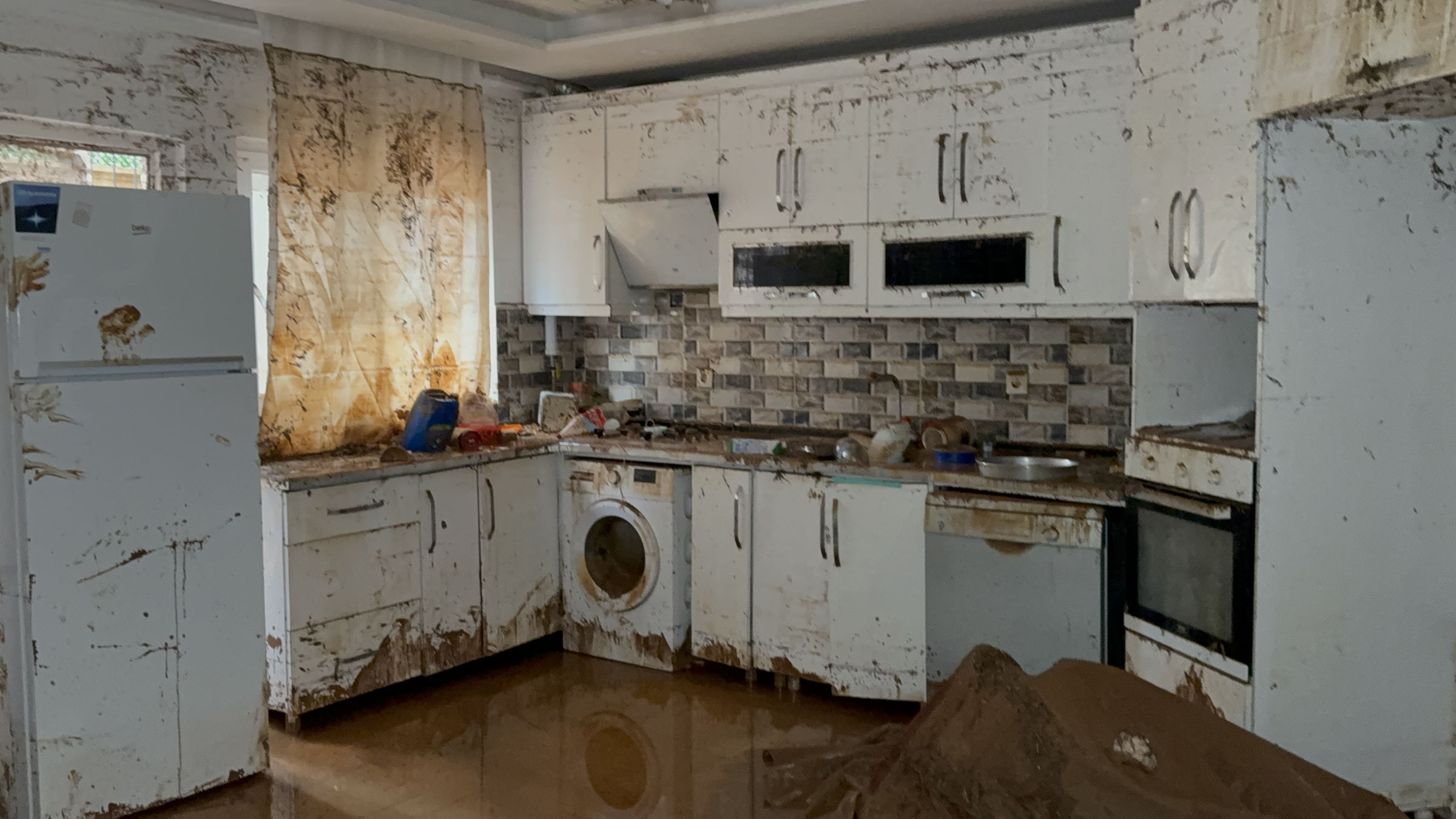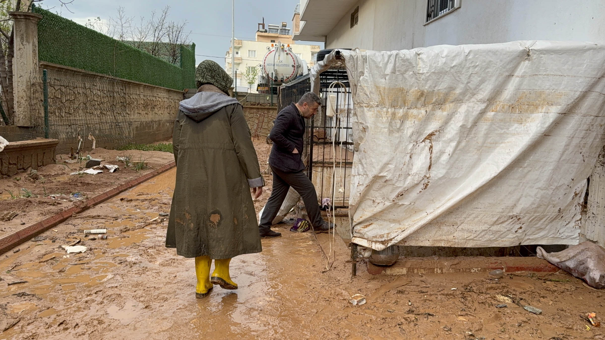 Midyat ilçesinde 18 Nisan gecesinden bu yana etkili olan kuvvetli sağanak, yaşamı olumsuz etkiledi. Bağlar Mahallesi’ndeki bodrum ve zemin katlardaki evler, tavana kadar yükselen sel sularının altında kaldı. Zarar gören bölgelerde temizlik çalışması başlatılırken, suların tahliye edilmesinin ardından evlerine giren aileler, tüm eşyalarının kullanılamaz hale geldiğini gördü.