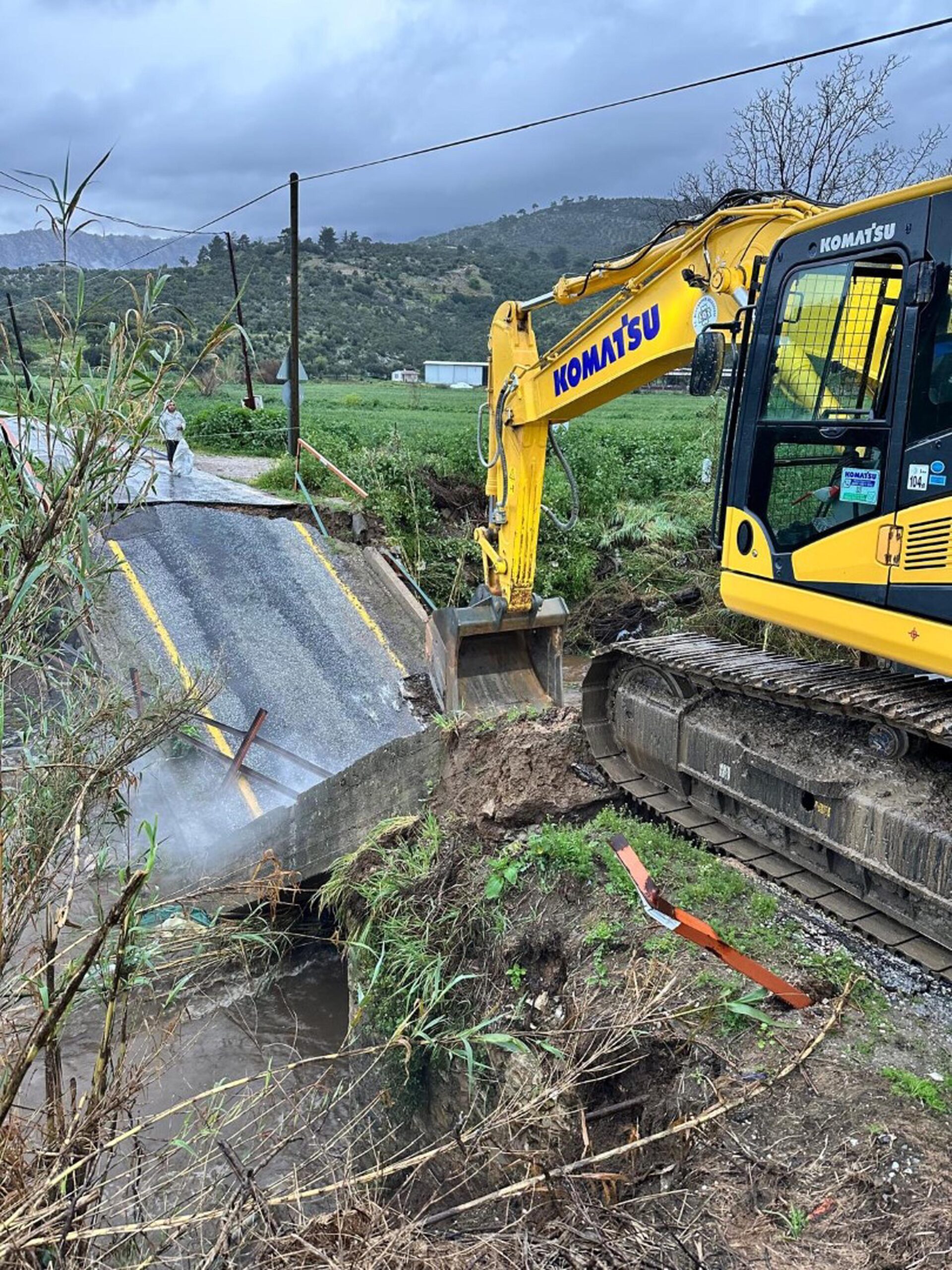 Milas’ta dün etkili olan sağanak nedeniyle derelerin su seviyesi yükseldi. Bafa-Gölyaka mahallerini birbirine bağlayan köprü çöktü. Bölgeye Muğla Büyükşehir Belediyesine bağlı ekipler sevk edildi. Ekipler tarafından köprü ve çevresi güvenlik şeridiyle kapatıldı. İş makineleri ile bölgedeki hafriyatlar kaldırılırken, ulaşımın alternatif yollardan sağlanacağı belirtildi.