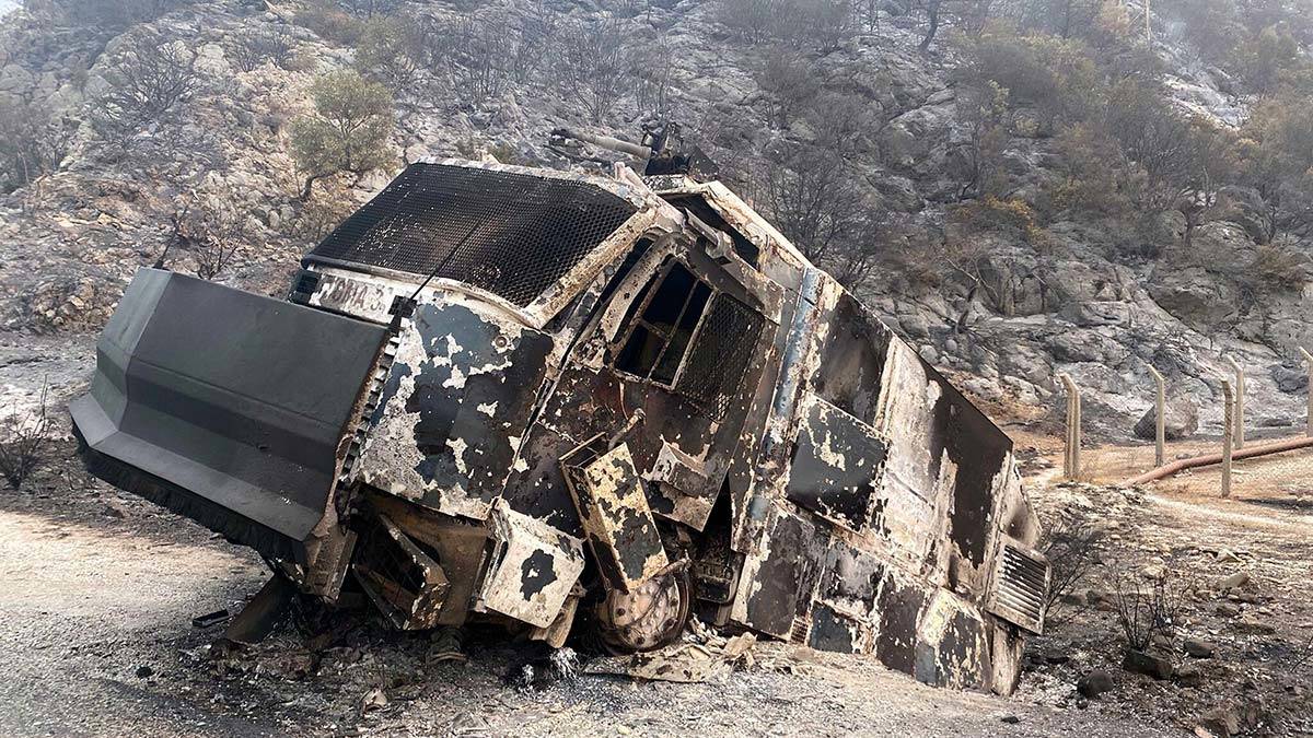 Antalya’nın Manavgat ilçesindeki yangından destek için Milas’a gelen gönüllü vatandaşlardan Mehmet Mutlu Geçer, santraldeki yangında alevlerin arasında kalıp, demir yığınına dönen TOMA’yı görünce şaşkınlık yaşadı.. Geçer, “Birileri çıkmış ‘polis nerede’ diyor. Polisler yangına müdahale etti. Görülen manzara ortada. TOMA tamamen yanmış. Burada ne itfaiyeciler ne halk ne jandarma uyudu” dedi.