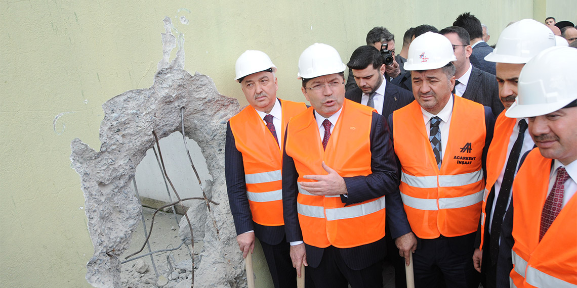 Bakan Tunç, konuşmasının ardından protokol mensupları ile birlikte eski cezaevinin bulunduğu alana inşa edilecek proje için yıkım butonuna bastı. Ardından ise eline balyoz alan Tunç, temsili olarak cezaevinin yıkımını başlattı.