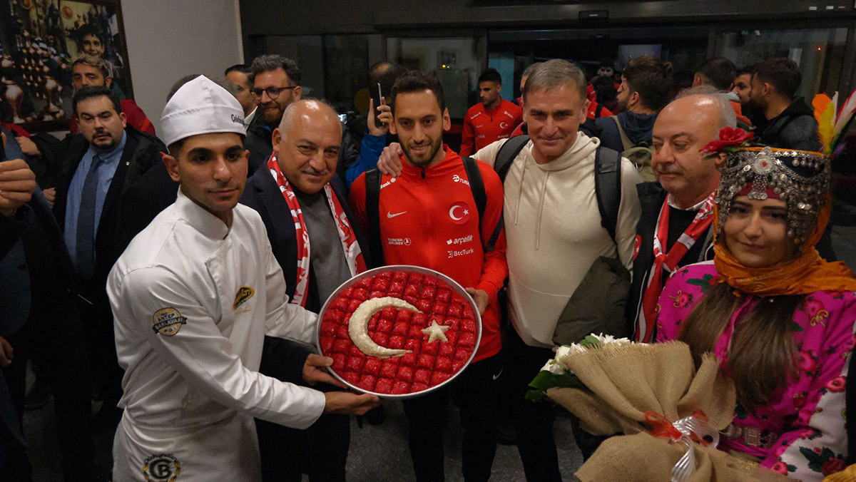 Çok sayıda taraftar Milli Takıma Gaziantep’te davullu ve baklavalı karşılama düzenledi.