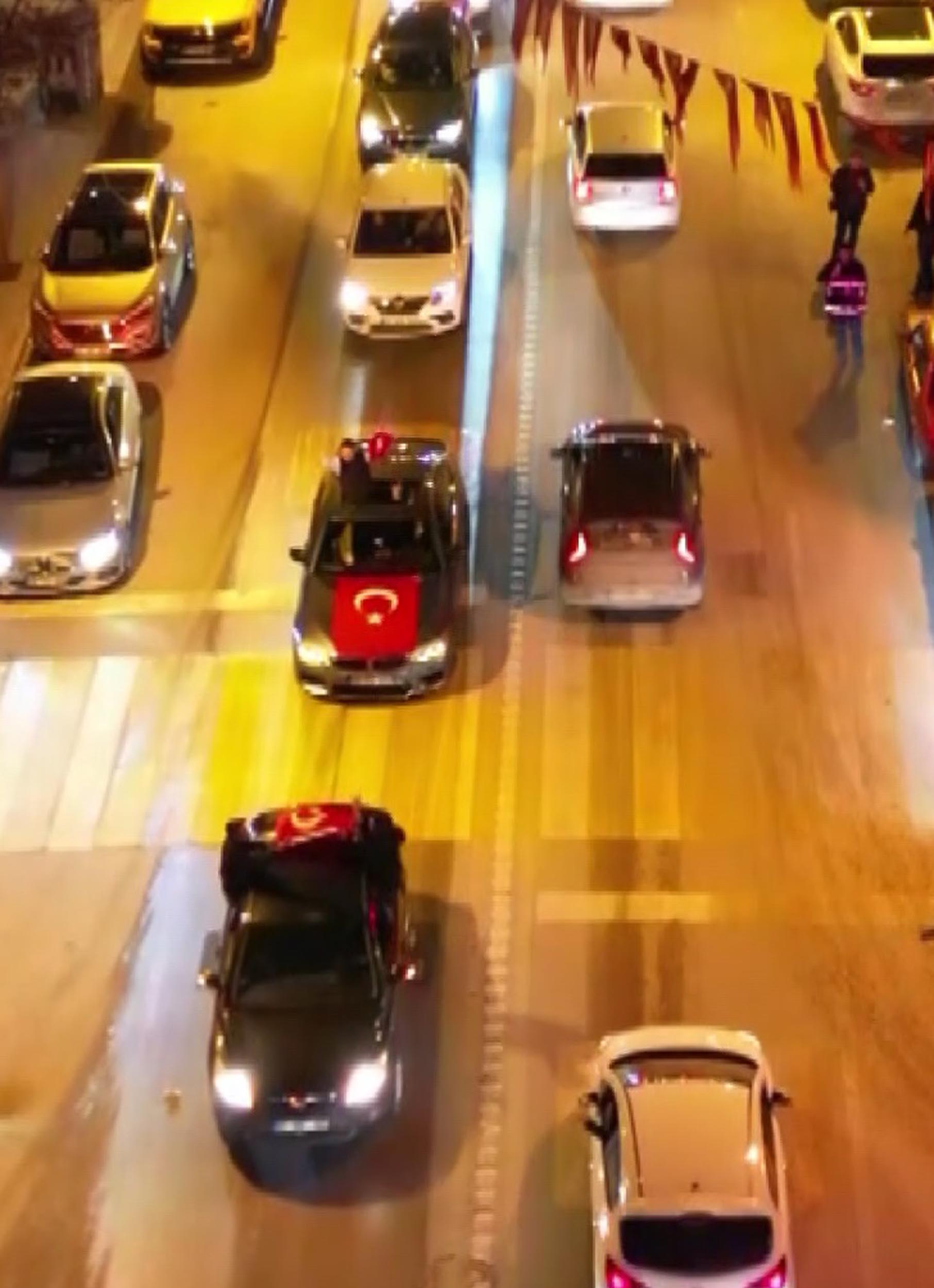 A Milli Futbol Takımı, 2026 FIFA Dünya Kupası Avrupa Elemeleri Play-Off Finali’nde Kosova’yı 1-0 mağlup etti. 24 yıl aradan sonra Dünya Kupası’na katılma hakkı kazanan milli takımın başarısı Erzurum’da coşkuyla kutlandı. Maçın bitiş düdüğüyle birlikte merkez Yakutiye ilçesindeki Cumhuriyet Caddesi onlarca aracın oluşturduğu konvoyla renklendi. Ay-yıldızlı bayraklarla caddede tur atan Erzurumlular, milli başarıyı kutladı.