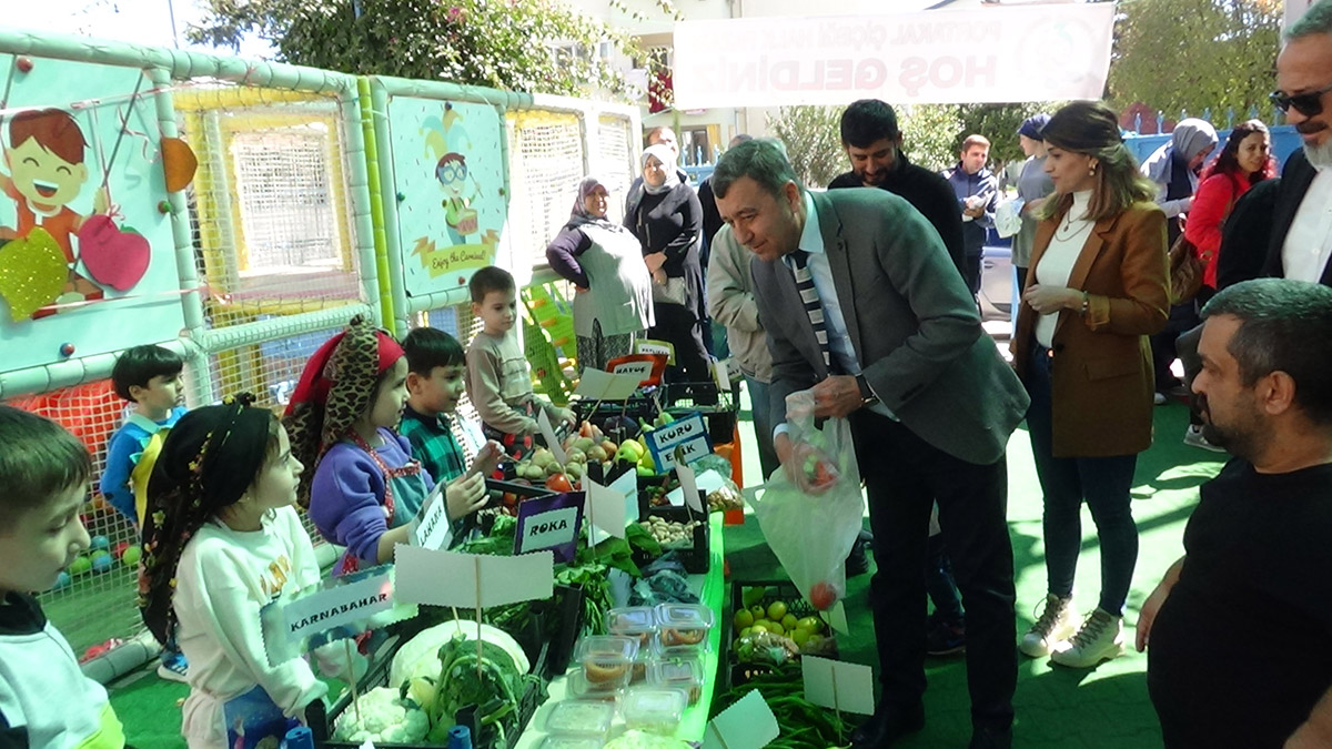 Merkez Mahallesi’nde Milli Eğitim Müdürlüğü’ne bağlı faaliyet gösteren Portakal Çiçeği Anaokulu bahçesinde kurulan mini halk pazarında, velilerin evlerinde hazırladıkları pasta, börek, tatlı ve içeceklerin yanı sıra yine velilerin sera ve bahçelerinden topladıkları sebze- meyveler tezgahlarda sergilendi. Halk pazarlarında büyüklerinin tezgahlarda sebze ve meyve sattığı gibi minik öğrenciler de tezgah başına geçerek sebze, meyve ve el yapımı gıda ürünlerini pazarladı. Miniklerin halk pazarına veliler ve çevre sakinleri de ilgi gösterdi. Halk pazarını İlçe Milli Eğitim Müdürü Yusuf Tekdemir, siyasi parti temsilcileri, okul müdürleri ve öğretmenler de ziyaret etti.