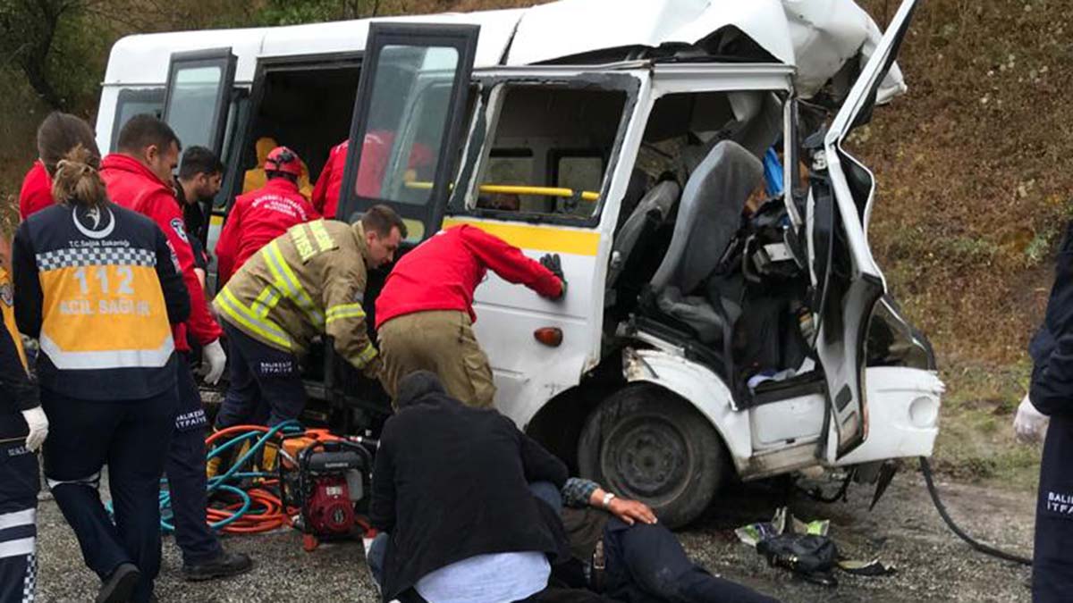 Balıkesir’in Dursunbey ilçesinde düğüne gidenlerin içinde bulunduğu minibüs ile tanker çarpıştı. Kazada 8 kişi öldü, 10 kişi de yaralandı.