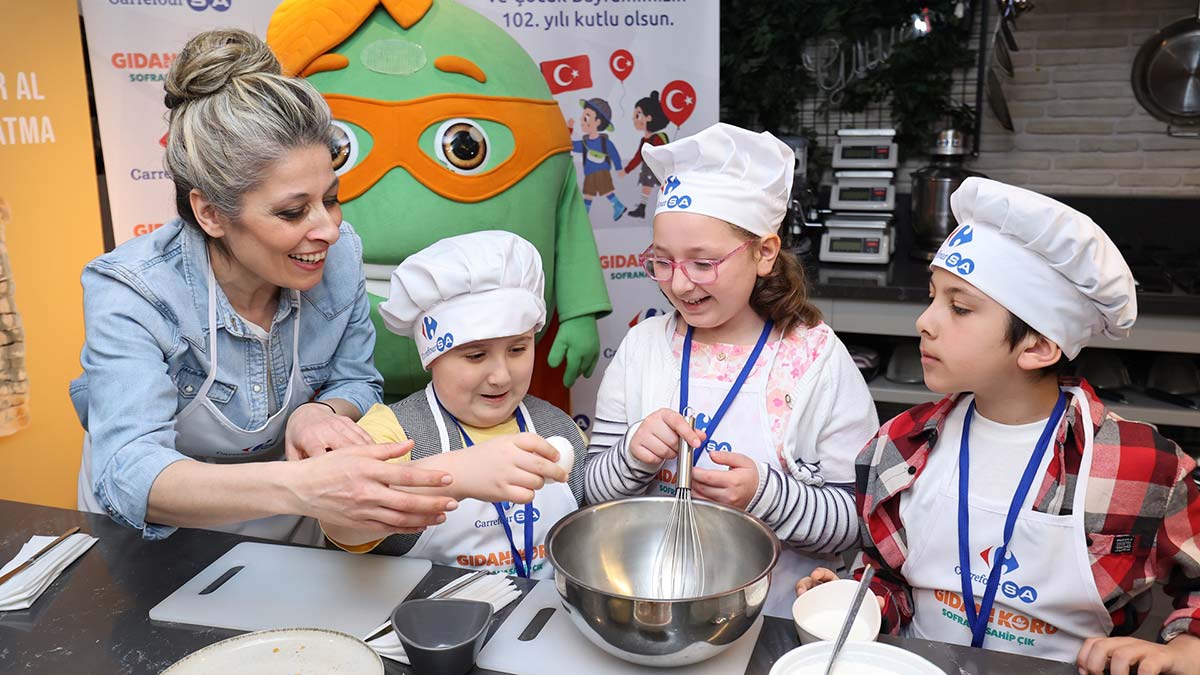 Gıda kaybı ve israfını önlemek amacıyla Tarım ve Orman Bakanlığı’nın koordinasyonu ile hayata geçirilen “Gıdanı Koru Sofrana Sahip Çık” kampanyasına destek olan CarrefourSA, kampanyaya İstanbul İl Tarım ve Orman Müdürlüğü ile hazırladıkları anlamlı bir atölye çalışması ile dikkat çekti. 23 Nisan kapsamında Lezzet Atölyesi’nin ev sahipliğinde gerçekleşen etkinlikte, İl Tarım ve Orman Müdürlüğü ve CarrefourSA çalışanlarının çocukları büyüklerin yerine mutfağa girerek birbirinden lezzetli menüler hazırladı. Olgunlaşmış, şekli bozulmuş ürünlerle muffin, pizza gibi lezzetler ortaya çıkaran çocuklar, ebeveynlere anlamlı mesajlar verdi.
