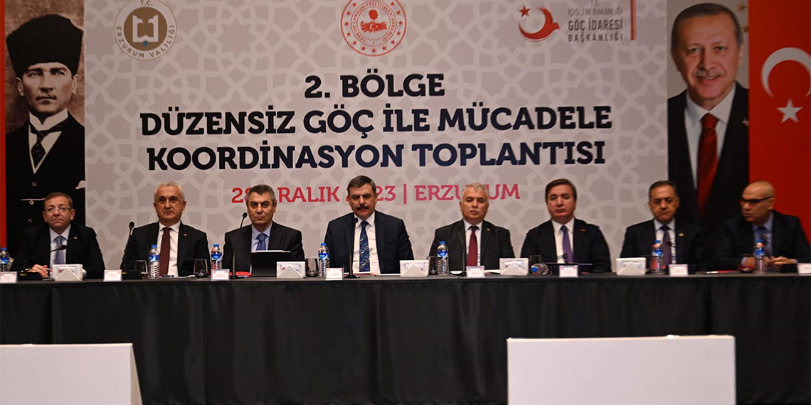 Erzurum’un ev sahipliğinde ikincisi düzenlenen ‘Düzensiz Göçle Mücadele Koordinasyon Toplantısı’na Göç İdaresi Başkanı Atilla Toros, Erzurum, Trabzon, Muş, Erzincan, Kars, Ağrı, Tunceli, Bingöl, Bayburt, Artvin, Gümüşhane, Rize, Iğdır, Ardahan valileri, 9’uncu Kolordu ve Garnizon Komutanı Tümgeneral Tevfik Algan, Erzurum Cumhuriyet Başsavcısı Hüseyin Tuncel, Göç İdaresi Başkan Yardımcısı Önder Bakan, Düzensiz Göçle Mücadele ve Sınır Dışı İşleri Genel Müdürü Ramazan Seçilmiş, Sınır Dışı İşleri Daire Başkanı Ahmet Küçükikiz, emniyet müdürleri, jandarma komutanları, Sahil Güvenlik Doğu Karadeniz Grup komutanları ile Göç İdaresi müdürleri katıldı.