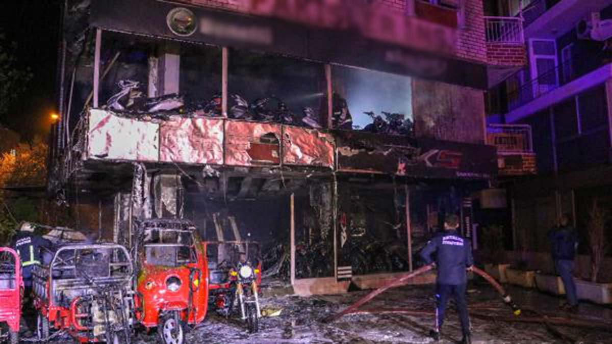Antalya’da motosiklet satan işyerinde çıkan yangında 3 milyon liralık maddi hasar oluştu