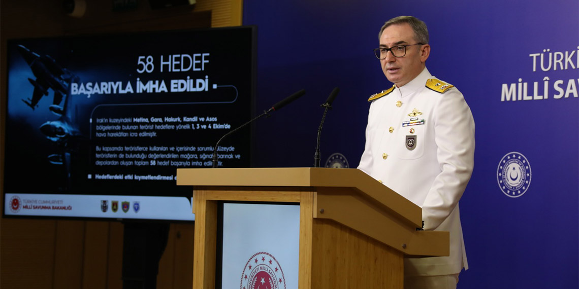Aktürk, PKK/KCK-PYD/YPG, FETÖ ve DEAŞ terör örgütleri başta olmak üzere terörle mücadeleyi kararlılıkla sürdürdüklerini ifade ederek, “Terörü kaynağında yok etme stratejisi ile Irak ve Suriye’nin kuzeyi dahil son bir haftada 37 terörist etkisiz hale getirilmiştir. Böylece etkisiz hale getirilen terörist sayısı bu yıl içinde bin 388’e, 24 Temmuz 2015’ten bugüne kadar ise 38 bin 731’e ulaşmıştır. Irak’ın kuzeyindeki Metina, Gara, Hakurk, Kandil ve Asos bölgelerinde bulunan terörist hedeflere yönelik 1, 3 ve 4 Ekim’de hava harekatları icra edilmiştir.